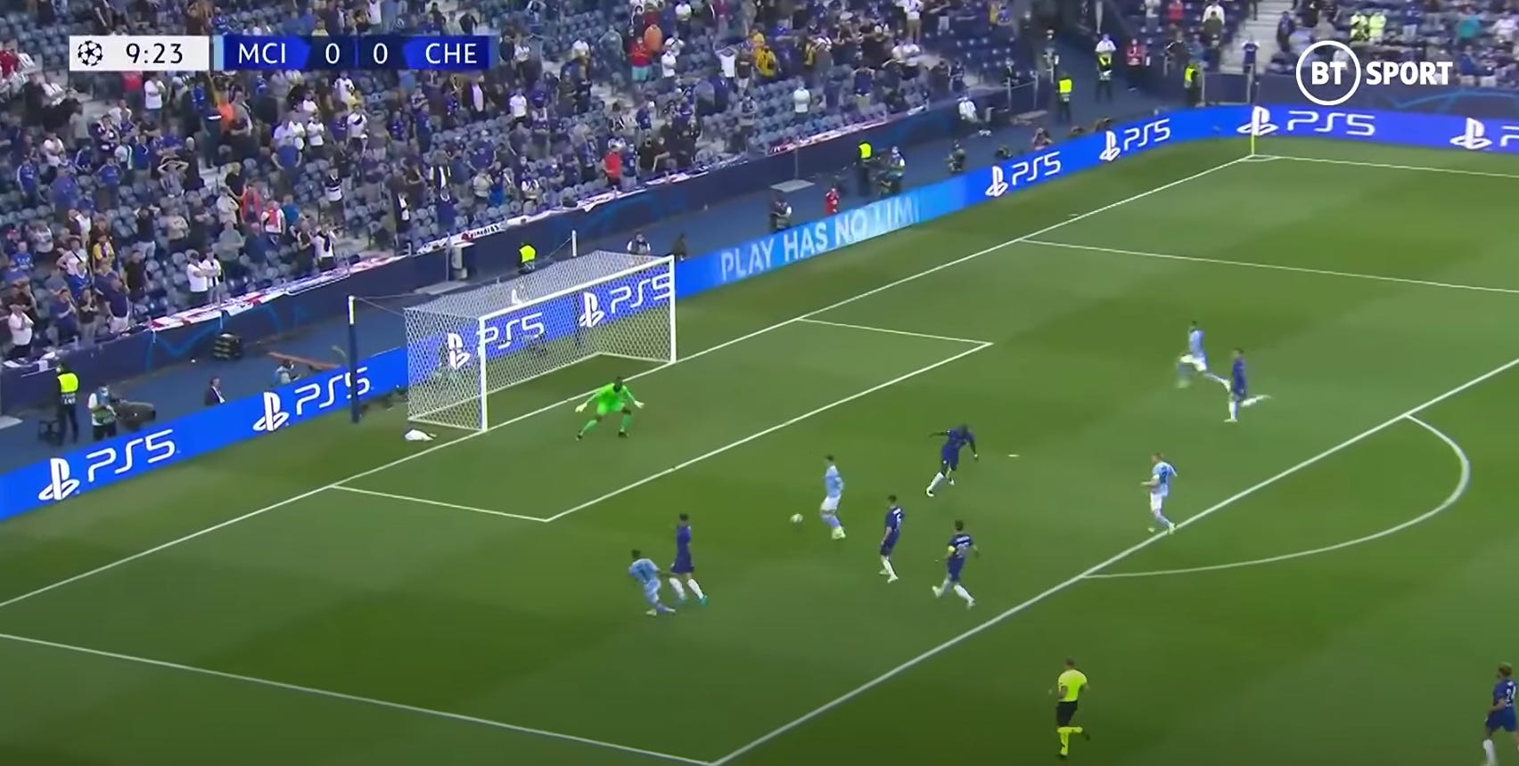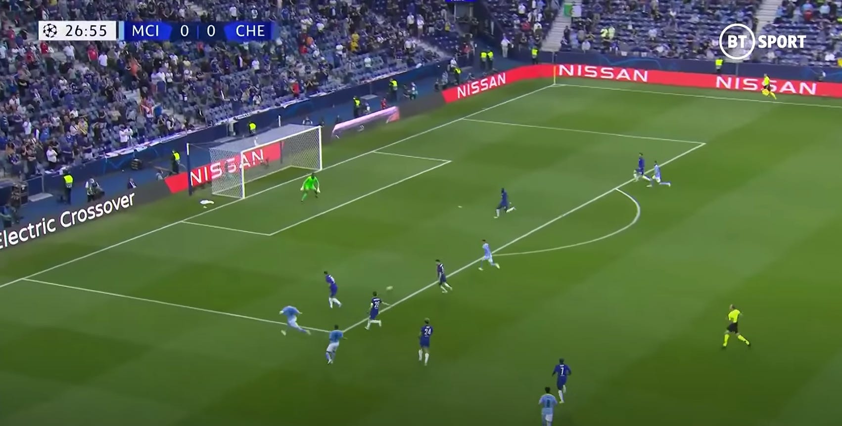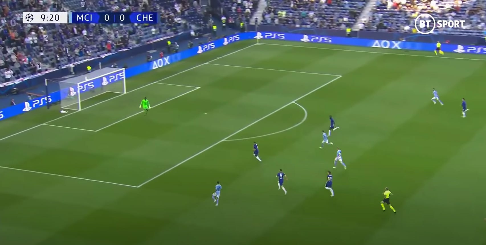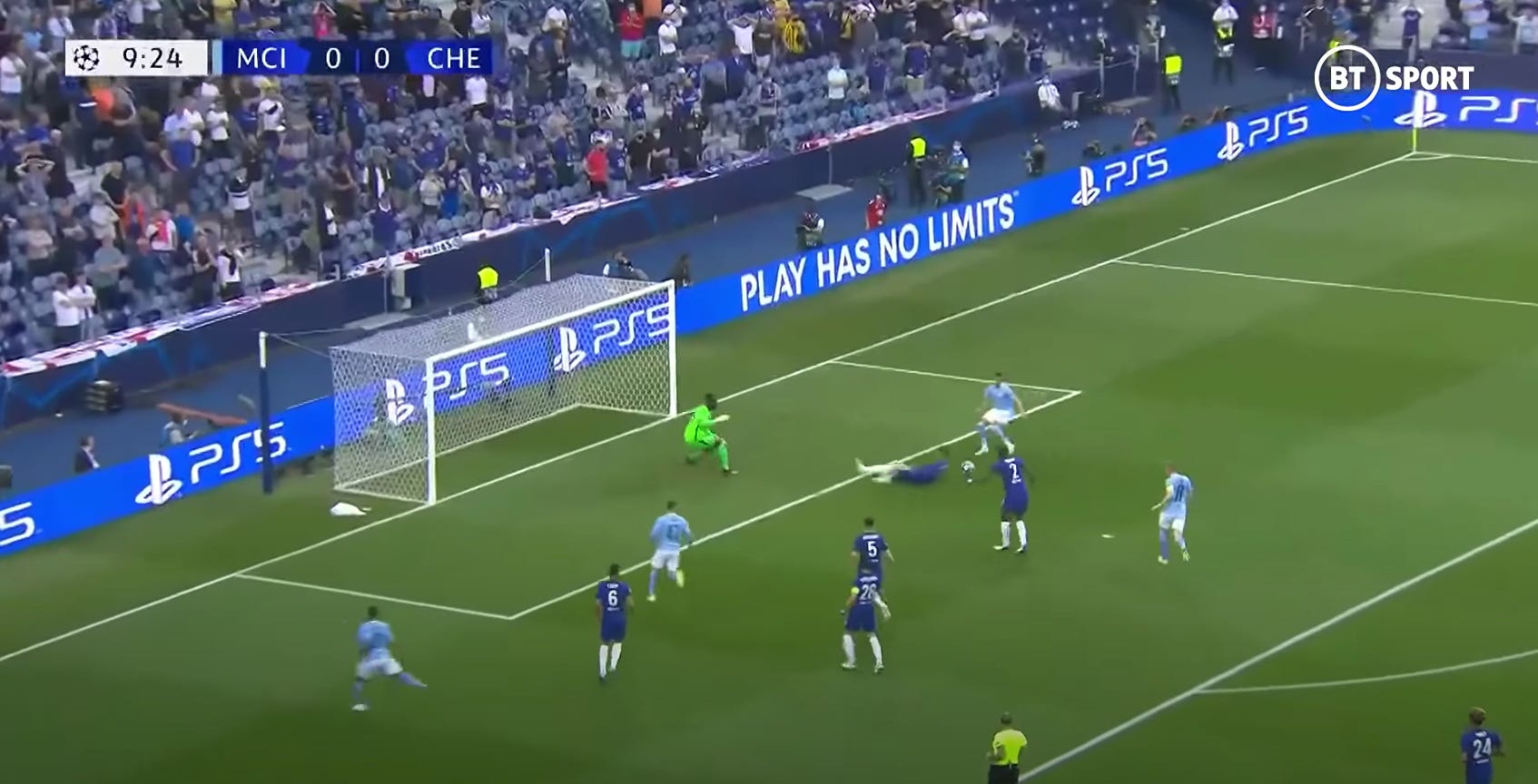 09:16: Sterling picks up the ball in his own half and carries it all the way into Chelsea’s box before crossing it into a very dangerous area, a yard away from Foden, who may have not been expecting the pass. Chilwell intercepts the cross excellently, before Mahrez has a chance to shoot.