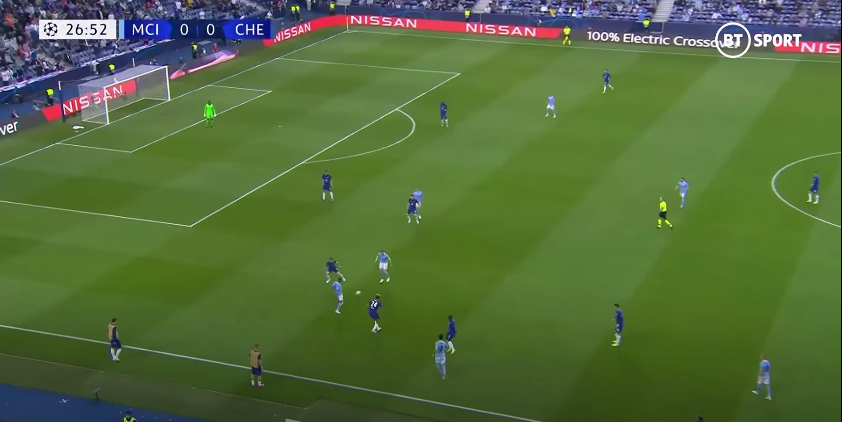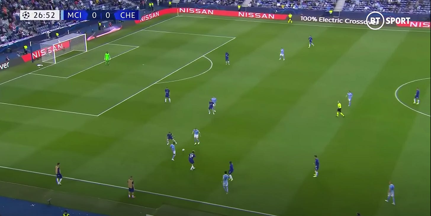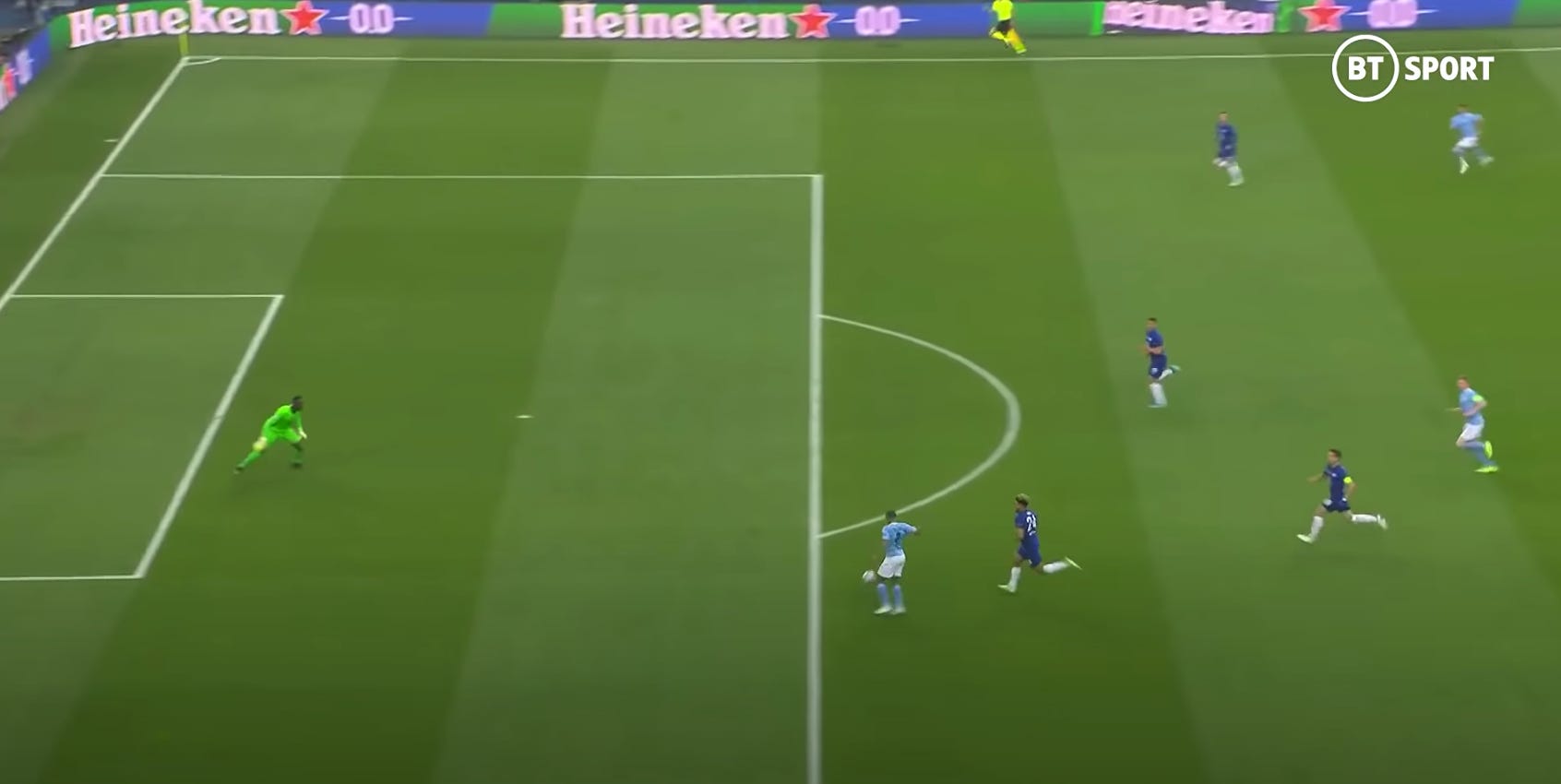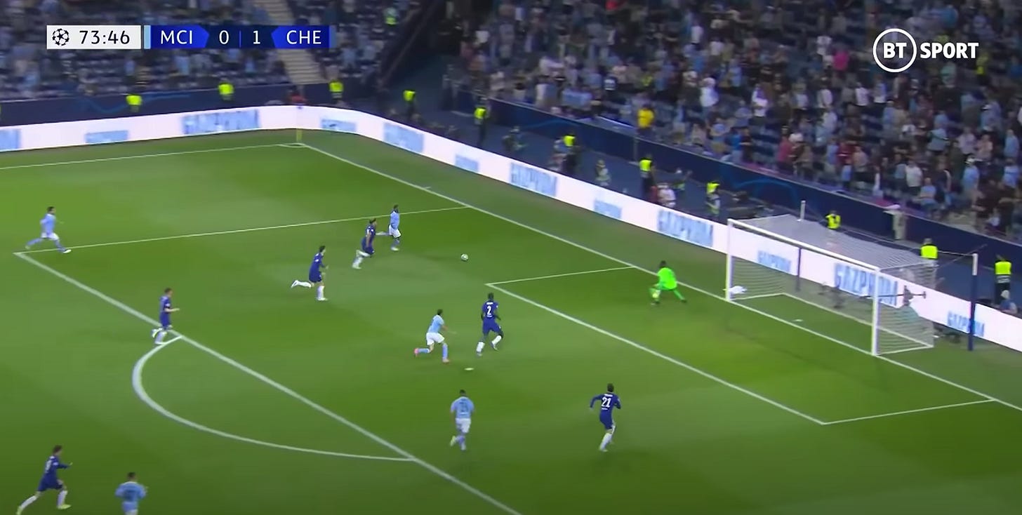 09:16: Sterling picks up the ball in his own half and carries it all the way into Chelsea’s box before crossing it into a very dangerous area, a yard away from Foden, who may have not been expecting the pass. Chilwell intercepts the cross excellently, before Mahrez has a chance to shoot.